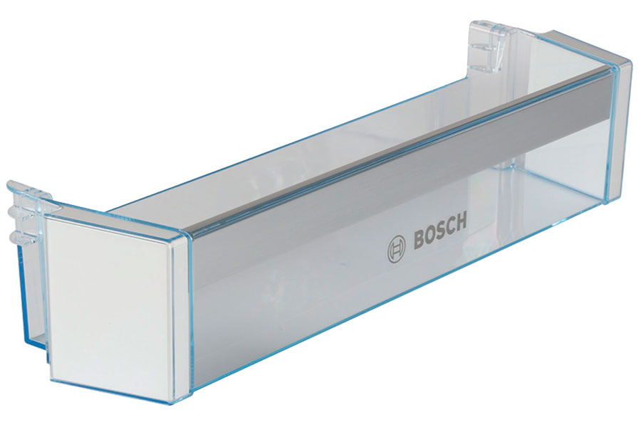 Nederste dørhylde med “BOSCH” logo og sølvfarvet pynteliste H30mm.