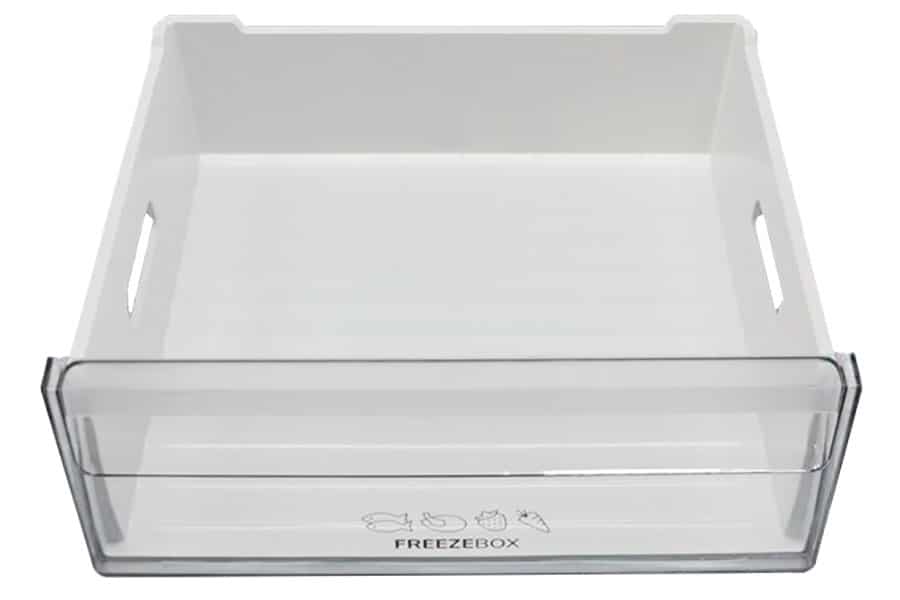 Fryseskuffe øverst, hvid skuffe med transparent front
