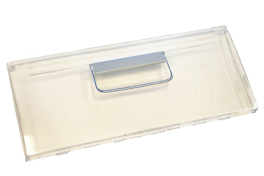 Kuldefang front for skuffe, transparent med sølvfarvet håndtag