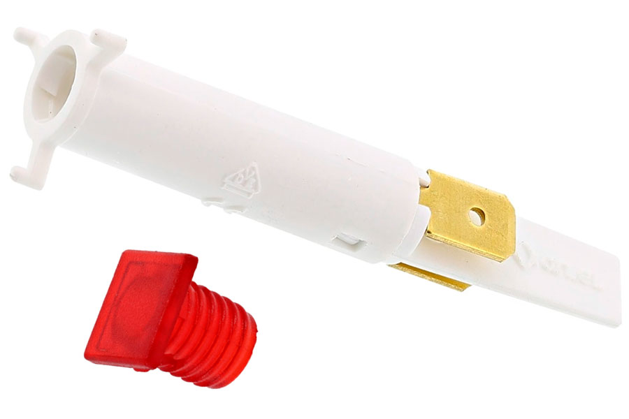 Kontrollampe med rød fikantet glas og ben